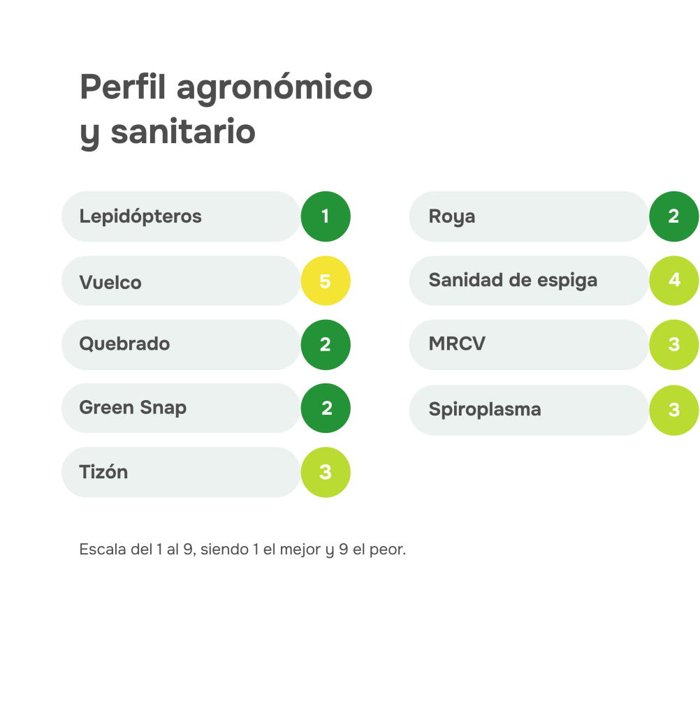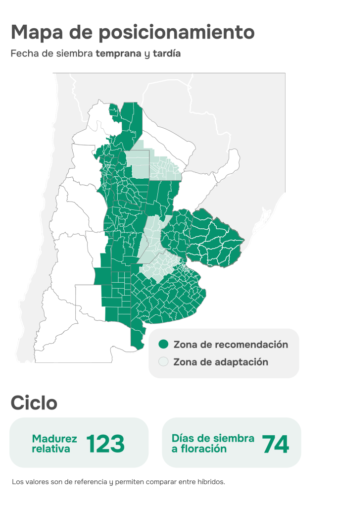 Destacada performance en fechas de siembra tardía en ciclo corto, con excepcional comportamiento a Spiroplasma.